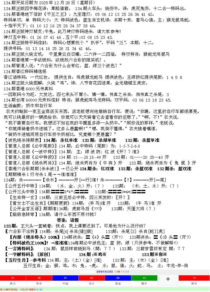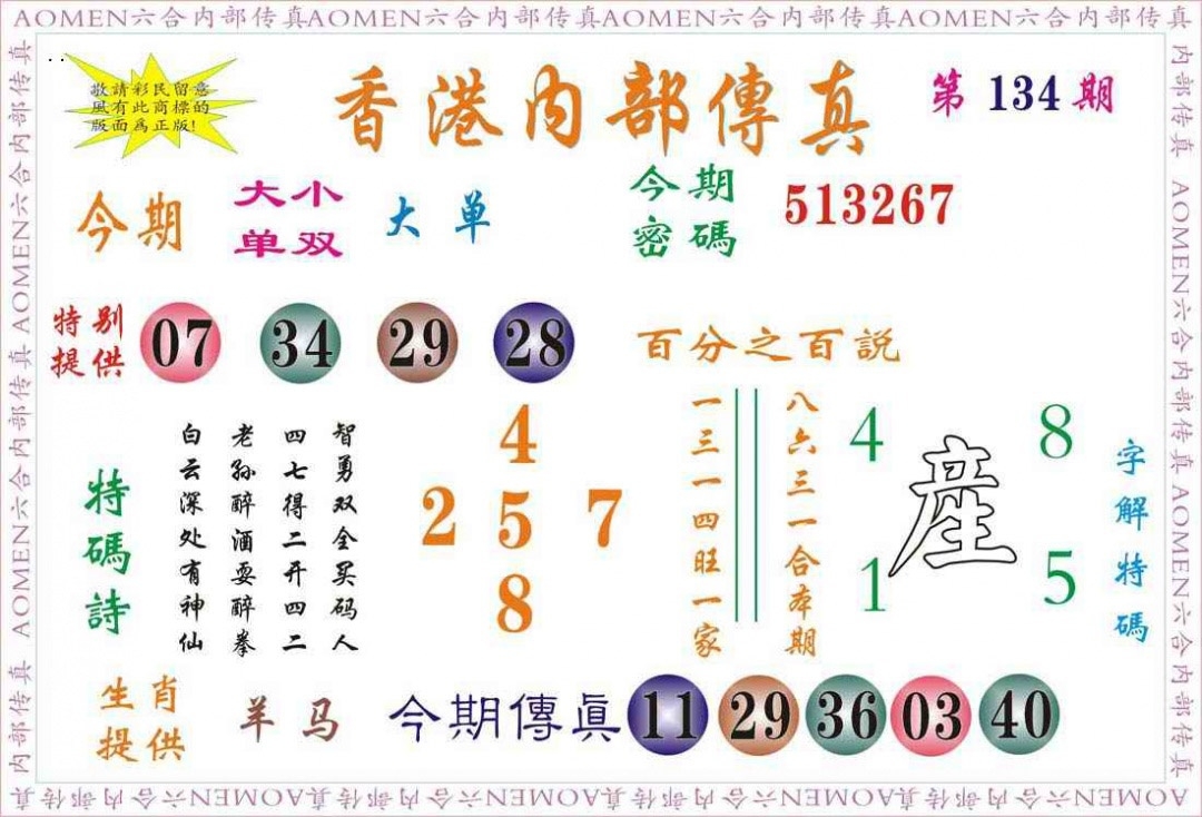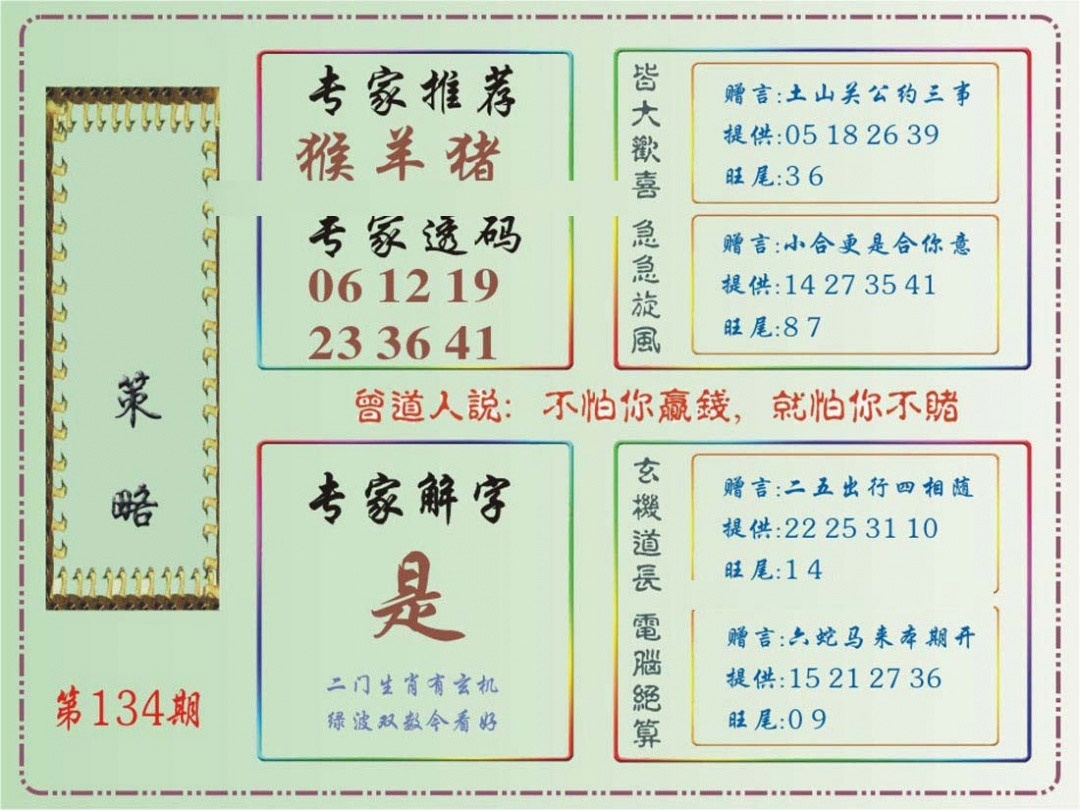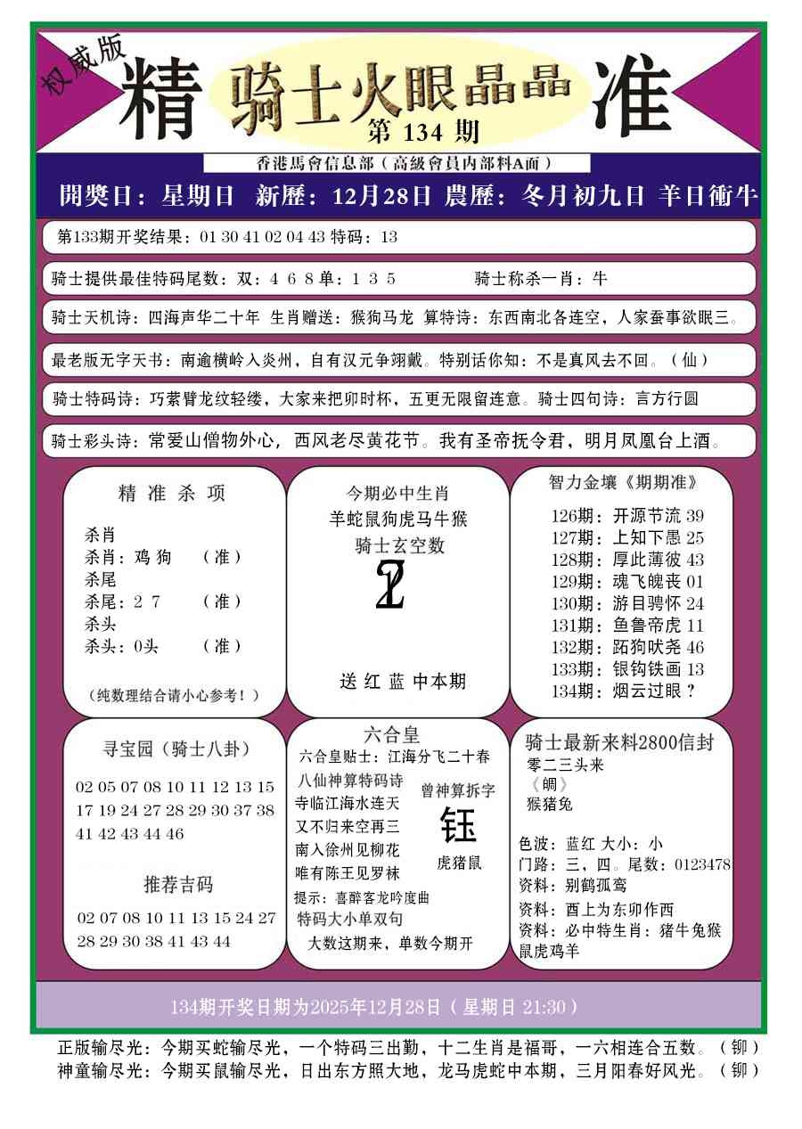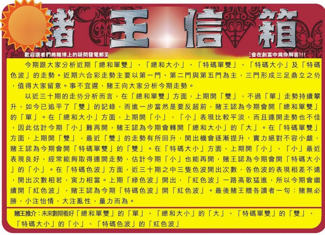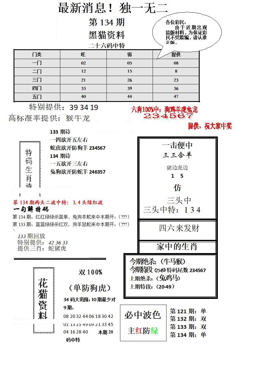 马经王牌料(荐)