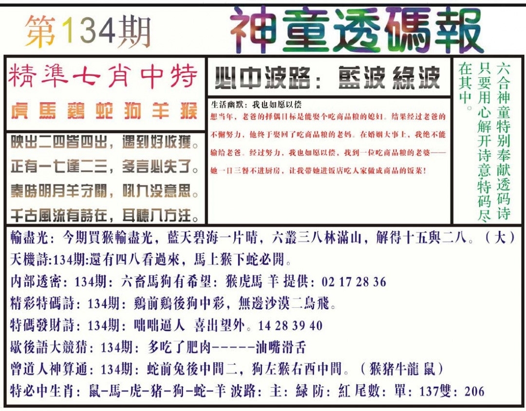 神童透码报(正版)